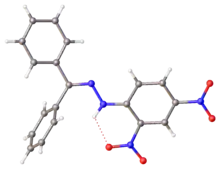 X-ray structure of DNP-derived hydrazone of benzophenone. Selected parameters: C=N, 128 pm; N-N, 1.38 pm, N-N-C(Ar), 119[4]