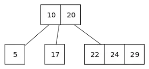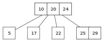 - Node (29) has no leftmost child. (The child for interval (24, 29) is empty.) Stop here and insert value 25 into this node.