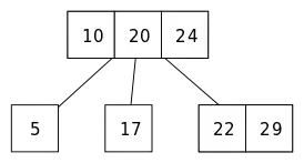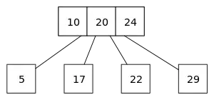 - Node (22, 24, 29) is a 4-node, so its middle element 24 is pushed up into the parent node.