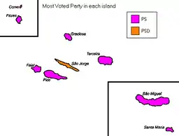 ![]() Map of Azores showing constituencies won | |||||||||||||||||||||||||||||||