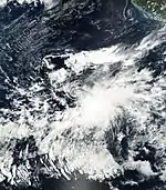 John originated on August 28 from an area of disturbed weather that was associated with the Intertropical Convergence Zone (ITCZ) near just outside the Central Pacific basin. Developing near the Central Pacific basin, John eventually entered early on August 30 and was then also monitored by the Central Pacific Hurricane Center. that was a tropical storm for several days and moved from the eastern to the central Pacific basin. Thereafter entering the central Pacific region, Tropical Storm John approached hurricane status while meandering erratically east-southeast of Hawaii. John eventually encountered strong wind shear, and dissipated on September 1. Tropical Storm John did not cause any damage or fatalities, as there were no reports of any land being affected.[28]