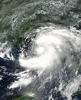 The storm affected Florida; rainfall peaked at 8.9 in (230 mm) at Tallahassee, and winds gusts topped out at 79 mph (127 km/h). Three people in Florida were killed by the storm, and total damage is estimated at around $30 million (2001 USD).[20]