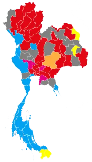 | Thai Rak Thai | 11,565,103 | 39.91 | 48 | 9,616,204 | 35.68 | 200 | 248 | |