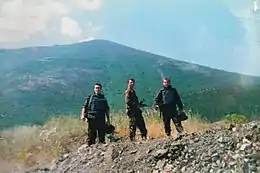 On the third day, the NLA seized control of the soccer stadium and the fighting spread toward the army positions on the Kosovo border. This triggered the army to intervene.[96] On 24 July, the army started an attack on the NLA by shelling villages from which the rebels had advanced, in the mountains above Tetovo. Fighting also continued towards the Kosovo border.[97] Army Suhoi fighter planes were also sent on a reconnaissance mission over NLA positions. At noon, backed by army artillery, police units attacked NLA positions in Drenovec 2 and the Tetovo teqe, starting the most serious of the clashes in Tetovo. In the attack the Macedonian police destroyed several insurgent positions in Drenovec 2, Strmno and Poroj, pushing the NLA away from the centre.[98] During the battle for Drenovec 2, a police bullet seriously wounded the NLA commander who was in charge of the attack on Tetovo – the Kosovar Rahim Beqiri, also known as Komandant Roki.[5] He was transported immediately to the Pristina hospital, where he died one week later.[5]