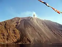 The 2002 Stromboli tsunami was a tsunami caused by a volcanic eruption on the island of Stromboli, in the Aeolian Islands of Sicily, located on the Tyrrhenian Sea. In May 2002, one of the island's two active volcanoes, called Stromboli, entered a new phase of explosive activity that was initially characterized by gas and ash emission from the summit craters.[1] On December 30, 2002, the seismic network recorded two large collapses of a huge portion of the Sciara del Fuoco, which resulted in the tsunamis. The first landslide was around 13:15 and the second one around 13:23 which lasted for 5–7 minutes. The event caused damages on the eastern coast side of Stromboli and Panarea.[2] These tsunamis have been considered the most violent ones that have struck Stromboli in the past 100 years.