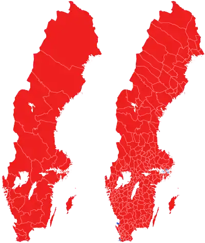 ![]() Largest party by constituency (left) and municipality (right) Red-Social Democratic, Blue-Moderate | |||||||||||||||||||||||||||||||||||||||||||||||||||||||||||||||||||||||||||||||||||||||||||||||||||||||||||||||||||||||