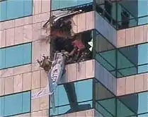 At 5:00 p.m. EST, 15-year-old Charlie J. Bishop's flight instructor left him at the plane to perform basic preflight inspection. Once he was left alone inside the plane, he started the engine and took off without permission.[1] As soon as the plane took off, the air traffic controllers alerted the United States Coast Guard and MacDill Air Force Base. Despite repeated warnings from a helicopter dispatched by the Coast Guard, the small plane continued on in flight until it crashed into the Bank of America tower. The plane crashed between the 28th and 29th floors of the 42-story building.[1][2]