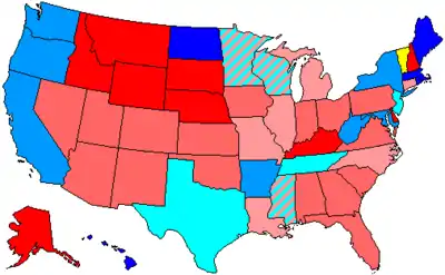 The 2002 United States House of Representatives elections were held on 5 November 2002, in the middle of President George W. Bush's first term. Although it was a midterm election under a Republican president, the Republican Party gained a net eight seats, solidifying their majority. Some speculate that this may have been due to increased support for the President's party in the wake of the September 11 attacks.[1]