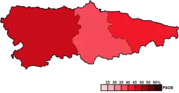 ![]() Constituency results map for the General Junta of the Principality of Asturias | |||||||||||||||||||||||||||||||||||||||||||||
