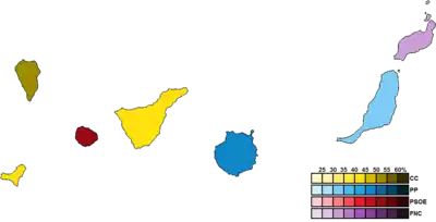 ![]() Constituency results map for the Parliament of the Canary Islands | ||||||||||||||||||||||||||||||||||||||||||||||||||||||||||||||||||||||||||||||||||