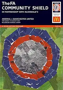 The 2003 FA Community Shield (also known as The FA Community Shield in partnership with McDonald's for sponsorship reasons) was the 81st staging of the FA Community Shield, an annual football match contested by the reigning champions of the Premier League and the holders of the FA Cup. It was held at Cardiff's Millennium Stadium on 10 August 2003. The match pitted Manchester United, champions of the 2002–03 Premier League against Arsenal, who beat Southampton 1–0 in the 2003 FA Cup Final. Manchester United won the Shield 4–3 on penalties, as neither side could be separated after a 1–1 draw in 90 minutes.