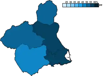 ![]() Constituency results map for the Regional Assembly of Murcia | |||||||||||||||||||||||||||||||||||||||||||||