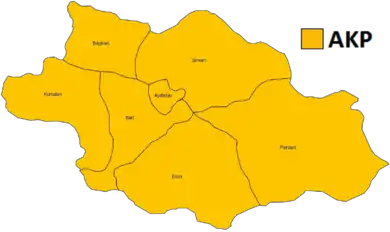 Four parties contested the by-election, as opposed to the 19 that contested the 2002 general election. Similar to general elections, the by-election elected three MPs through a party-list proportional representation system using the D'Hondt method. The parties contesting the election were the Justice and Development Party (AKP), the Republican People's Party (CHP), the Workers' Party (İP) and the Communist Party of Turkey (TKP).[2] The AKP won all three seats up for election with 84.82% of the votes, gaining the two other seats that had been won by the CHP and an independent candidate in November 2002. The CHP came second with 13.79% of the vote and lost their seat despite increasing their vote share since November.