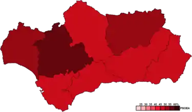 ![]() Constituency results map for the Parliament of Andalusia | ||||||||||||||||||||||||||||||||||||||||||||||||||||||||||||||||||||||||||||||||||