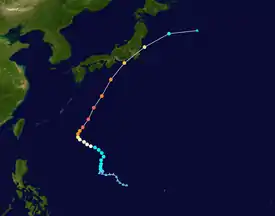 | Chaba | August 18–31 | Violent typhoon | 205 km/h (125 mph) | 910 hPa (26.87 inHg) | Ryukyu Islands, South Korea, Japan | $2 billion | 20 | |