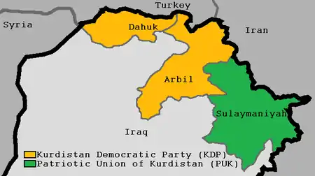 | Democratic Patriotic Alliance of Kurdistan | KDP PUK | 109,295 | 31 | 65.87% | |