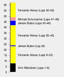 - The podium ceremony was conducted with Jenson Button in 3rd place, prior to his disqualification.