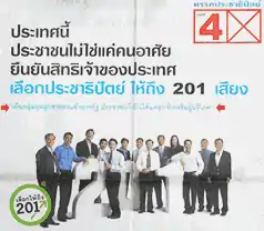 The Democrat Party, led by Banyat Bantadtan, did not seriously expect to defeat the coalition of the other two parties, but hoped to win 200 seats, which would have been a gain of 70 seats. However, intra-party conflicts between Banyat's southern faction and the Bangkok faction led by Abhisit Vejjajiva made this goal appear even less realistic. The Democrats also developed a populist agenda, promising more jobs, free education and health care, and combating crime and corruption. However, the party refused to give details of their policies.[1]