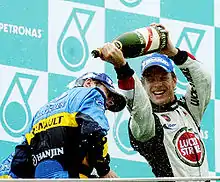 The 2006 Malaysian Grand Prix (officially the 2006 Formula 1 Petronas Malaysian Grand Prix)[2] was a Formula One motor race held at the Sepang International Circuit in Selangor, Malaysia on 19 March 2006. The 56-lap race was the second round of the 2006 Formula One season and the eighth running of the Malaysian Grand Prix as a World Championship race. It was won by Renault driver Giancarlo Fisichella, who took the final of his three victories in Formula One, and scored his first points of the season. He had also started on pole position. His team-mate, Fernando Alonso, finished second to extend his lead in the drivers' championship standings to 7 points. Jenson Button took the first podium in Honda's three year return to the sport by finishing in third place.