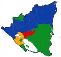 According to M & R, the FSLN polls first on 7 of the country's 17 departments, mostly on northern and western Nicaragua. ALN-PC is number one on 6 departments in southern and eastern Nicaragua, including the Southern Autonomous Region (R.A.A.S.). The MRS party leads the polls on 3 departments including the nation's capital, Managua, and the PLC polls first in the department of Boaco.