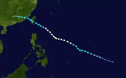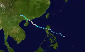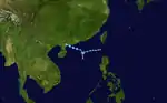 Heavy rainfall in Taiwan caused flooding and four minor injuries. Rain also fell heavily in the northern Philippines.[24] The storm has also killed at least 32 people in China, while another 60 people are missing. Agricultural losses in Taiwan amounted to NT$73 million (US$2.2 million).[25] Total damages from the storm amounted to $450 million.