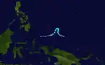 On March 4, a tropical depression formed out of a wave close to the equator southeast of Palau. The JTWC upgraded it to Tropical Storm 01W at 3 p.m. UTC the same day. The JTWC downgraded it back to a depression on March 5 due to shear, and it never regained tropical storm strength before dissipating on March 7.[13]