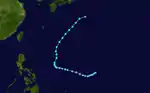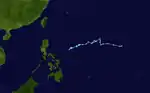 On June 24, the JMA started to track a weak tropical depression located to the southeast of Samar, Visayas.[15][21] After crossing the archipelago, as it emerged to the South China Sea on June 26, the PAGASA named it Domeng while the JTWC had started issuing advisories with the designation of 03W.[22] Moving northwestward, 03W had entered in an area of favorable environments and intensified into a tropical storm, with the naming of Jelawat on June 27. Jelawat made landfall over Southern China and fully dissipated inland on June 29.[15][22]