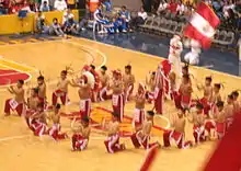 The San Beda Little Indians during their halftime presentation at the seniors' basketball finals.
