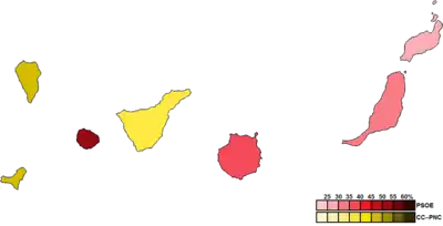 ![]() Constituency results map for the Parliament of the Canary Islands | |||||||||||||||||||||||||||||||||||||||||||||