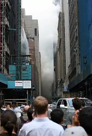 Media related to 2007 New York City steam explosion at Wikimedia Commons- Raw surveillance footage of the street moments before the steam pipe explosion.