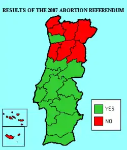 An abortion referendum took place in Portugal on 11 February 2007, to decide whether to legalise abortion up to ten weeks. The referendum was the fulfillment of an election pledge by the governing Socialist Party of Prime Minister José Sócrates.[1]