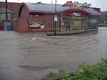 On 25 June, Sheffield suffered extensive damage as the River Don over topped its banks causing widespread flooding in the Don Valley area of the city. A 14-year-old boy was swept away by the swollen River Sheaf,[102] a 68-year-old man died after attempting to cross a flooded road in Sheffield city centre,[103] and several cattle were washed away, found up to 3.5 miles (5.6 km) across fields in some areas of cultivated land. The Meadowhall shopping centre was closed due to flooding with some shops remaining closed downstairs until late September and Sheffield Wednesday's ground Hillsborough was under 6 feet (1.83 m) of water. A number of people were rescued by RAF helicopters from buildings in the Brightside area,[104] whilst in the Millhouses Park area to the southwest of the city the River Sheaf overtopped its banks causing widespread damage.[105] There was also widespread flooding in Barnsley, Doncaster and Rotherham with much of these towns cut off.
