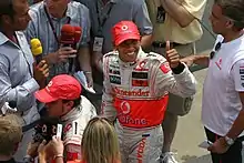 The 2007 United States Grand Prix (formally the 2007 Formula 1 United States Grand Prix)[2] was a Formula One motor race held at the Indianapolis Motor Speedway in Speedway, Indiana, in the United States on 17 June 2007.[3] The 73-lap race was the seventh round of the 2007 Formula One season and was won by McLaren-Mercedes driver Lewis Hamilton. His teammate, Fernando Alonso, finished the race in second position whilst Ferrari driver, Felipe Massa, completed the podium by finishing third. This was the debut race of the future world champion Sebastian Vettel with BMW Sauber F1 Team.
