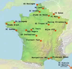 Teams relegated to Ligue 2
