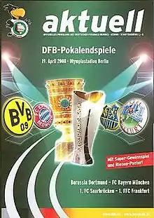 The 2008 DFB-Pokal Final decided the winner of the 2007–08 DFB-Pokal, the 65th season of Germany's premier knockout football cup competition. The match took place on 19 April 2008 between thirteen-time winners Bayern München and two-time winners Borussia Dortmund. The final was played in front of 70,000 at Berlin's Olympiastadion. Bayern ran out 2–1 winners in extra time, thanks to two strikes from Italian forward Luca Toni, gaining their 14th DFB-Pokal title and gaining the first trophy of a league and cup double.[3]