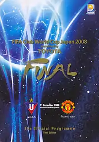 The 2008 FIFA Club World Cup Final was the final match of the 2008 FIFA Club World Cup, an association football tournament for the champion clubs from each of FIFA's six continental confederations. The match took place at the International Stadium Yokohama, Japan, on 21 December 2008, and pitted LDU Quito of Ecuador, the CONMEBOL club champions, and Manchester United of England, the UEFA club champions. Despite going down to ten men early in the second half, Manchester United won the match 1–0 thanks to a 73rd-minute goal from Wayne Rooney.[2]