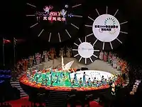 A flower show was opened to the public on 13 May at Victoria Park. The show lasted 10 days featuring 60,000 pots of themed flower. Around 200 organizations from 20 countries participated in the show.[14] The new Tseung Kwan O Sports Ground was opened on 19 May to celebrate the 200 days count down. A relay race was held between the HK police, HK immigration department, Leisure and Cultural department, HK Fire service, Customs and Exercise department, Hong Kong University of Science and Technology and Sai Kung District sports association.[15] There was a dragon and lion dance performance and a tree planting ceremony.[15] A cheerleading competition was also held.[16]
