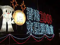 The 2009 East Asian Games (simplified Chinese: 2009年东亚运动会; traditional Chinese: 2009年東亞運動會; pinyin: Èr líng líng jiǔ nián Dōngyà yùndònghuì; Jyutping: ji6 ling4 ling4 gau2 nin4 dung1 ngaa3 wan6 dung6 wui2), officially known as the V East Asian Games, was an international multi-sport event that hosted by Hong Kong, China, between 5 December and 13 December 2009. A total of 2,377 athletes from 9 East Asian national competed in 262 events in 22 sports.[1] It was the biggest sporting event ever held in the territory.[1]