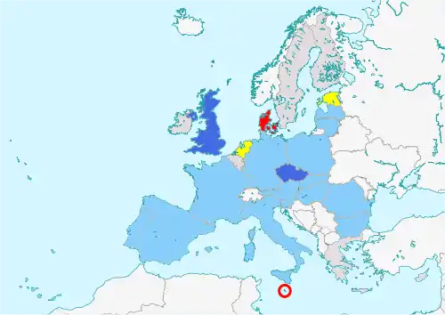 | Cyprus | 2 (DISY) | 1 (EDEK) | 2 (AKEL) | 1 (DIKO) | 6 | 58.88% | [41][42] | ||||