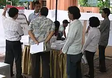 Over 60 parties registered for the elections, but only 34 originally met the eligibility requirements.[7][8] However, on 15 August 2008, following a successful legal challenge, another four parties were permitted to join the contest, making 38 in total.[9][10] A total of 11,219 candidates vied for seats in the DPR, and 1,116 candidates vied for seats in the DPD.[11] Among the requirements for parties is that 30% of candidates are women.[12] The Constitutional Court also lifted the restriction on former members of the Indonesian Communist Party to stand as candidates in the legislative election.[13]