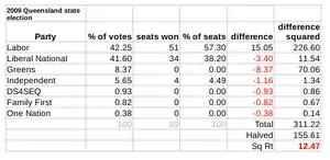 A redistribution saw Labor notionally pick up three seats. Therefore, the LNP notionally needed to pick up 22 seats rather than 20 seats to form a majority government, which equated to an unchanged uniform 8.3 percent two party preferred swing.[7]