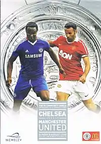 The 2010 FA Community Shield (also known as The FA Community Shield sponsored by McDonald's for sponsorship reasons) was the 88th FA Community Shield, an annual football match contested by the winners of the previous season's Premier League and FA Cup competitions. The match was played at Wembley Stadium, London, on 8 August 2010,[1] and contested by league and cup double winners Chelsea and league runners-up Manchester United. Manchester United won the match 3–1 with goals from Antonio Valencia, Javier Hernández and Dimitar Berbatov; Chelsea's consolation goal came from Salomon Kalou.[4] It was Manchester United's 14th outright victory in the Community Shield.[5]