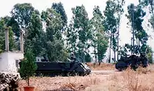 Several minutes after the confrontation began, an Israeli Air Force AH-64 Apache helicopter gunship attacked a Lebanese Armed Forces command center in the southern Lebanese town of Al Taybeh, destroying several M113 armored personnel carriers.[1][28][29][33]