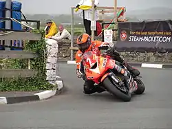 The main event was won by Ryan Farquhar claiming victory in the 2010 Southern 100 Solo Championship race, held over 2 legs[1] after Michael Dunlop crashed at Iron Gate on lap 5.[2] The 2010 Southern 100 Races consisted of twelve races including four combined races with Ryan Farquhar, Michael Dunlop and William Dunlop taking the most wins with three victories each. The two 400cc races were won by Roy Richardson and Alastair Howarth respectively, with Chris Palmer winning the second of the 125cc combined races. In the other combined classes, the inaugural 650cc twin-cylinder race was won by Ryan Farquhar and a 600cc class win for Wayne Hamilton in the combined 1000cc/600cc race. The 600cc support race produced a first time winner for local Isle of Man competitor Paul Smyth and other first time winners included Klaus Klaffenböck/Dan Sayle winning both Sidecar Races and William Cowden in the Senior Support Race.