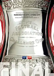 The 2011 FA Cup Final was the 130th final of the FA Cup, the world's oldest domestic football cup competition.[4][5] The final took place on 14 May 2011 at Wembley Stadium in London in front of 88,643 spectators and a British television audience of more than eight million.[6][7] The clubs contesting the final were Premier League clubs Manchester City and Stoke City. The match was Stoke City's first FA Cup final, and Manchester City's ninth.