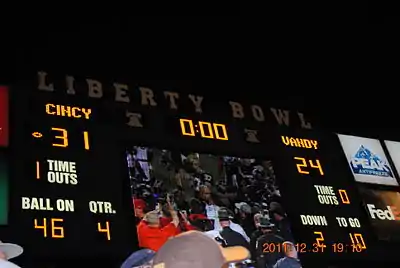 The game, which was telecast at 2:30 p.m. CT on ABC, featured the Cincinnati Bearcats, Big East co-champions, versus the Vanderbilt Commodores of the Southeastern Conference (SEC).[2] It was the first edition of the game to be aired by ABC since 1980. Cincinnati won the game, 31–24, in front of a crowd of 57,103.[3]
