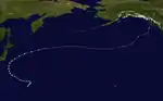 A weak non-tropical system formed within the Intertropical Convergence Zone on May 17, as it moved in a westward direction. On May 19, the JTWC reported that an area of low pressure had persisted about 510 km (320 mi) to the southeast of Yap. As the system moved towards the northwest under the influence of a subtropical ridge of high pressure, it rapidly consolidated in an area of light to moderate vertical wind shear. The JMA then started to monitor the system as a tropical depression later that day, before the JTWC designated it as Tropical Depression 04W early on May 20. The JTWC then reported later that day that the depression had intensified into a tropical storm with wind speeds of 65 km/h (40 mph), however, it later reported that it had overestimated the wind speeds and consequently lowered the storm's status to a tropical depression, based on observations from Yap island. Late on May 21, both the JMA and the JTWC reported that the depression had now become a tropical storm with the JMA naming it as Songda. Over the next couple of days, the system gradually intensified further while moving northwest into PAGASA's area of responsibility. PAGASA named it as Chedeng. At 1200 UTC on May 24, the JTWC reported that Songda had intensified into a typhoon. 12 hours later, the JMA followed suit while the system was located about 800 km (500 mi) to the southeast of Manila in the Philippines. It rapidly intensified into a Category 5 typhoon. On the afternoon of May 29, Songda became extratropical south of Shikoku Island.[32] The extratropical remnants of Sonda later crossed the International Date Line, which was later absorbed by another extratropical cyclone on June 4, and later dissipated completely over Alaska.