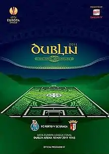 The 2011 UEFA Europa League Final was the final match of the 2010–11 UEFA Europa League, the 40th season of Europe's secondary club football tournament organised by UEFA, and the second season since it was renamed from UEFA Cup to UEFA Europa League. The match was played at the Aviva Stadium in Dublin, Republic of Ireland, on 18 May 2011,[5] between two Portuguese teams – Porto and Braga – for the first time in UEFA competition finals.[6]