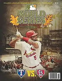 The 2011 World Series was the championship series of Major League Baseball's (MLB) 2011 season.[1] The 107th edition of the World Series, it was a best-of-seven playoff played between the American League (AL) champion Texas Rangers and the National League (NL) champion St. Louis Cardinals;[2][3] the Cardinals defeated the Rangers in seven games to win their 11th World Series championship and their first since 2006.
