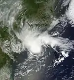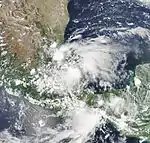 Despite light rainfall and gusty winds on islands such as Barbados, Martinique, and Puerto Rico, impact from Ernesto in the Lesser Antilles was negligible.[23] Rip currents along the coast of the Florida Panhandle resulted in at least 10 lifeguard rescues at Pensacola Beach, while a portion of a store in the same city was washed away.[39][40] In Mexico, officials reported that 85,000 people in Majahual lost power; roads were damaged elsewhere in state of Quintana Roo. Freshwater flooding occurred along the coast of the Bay of Campeche, including in Coatzacoalcos, Veracruz. Flooding and several landslides lashed mountainous areas of Veracruz, Puebla, and Oaxaca. Officials indicated that 10,000 houses were partially damaged by flooding in Veracruz. Flooding occurred well inland in association with the remnants of Ernesto. In Guerrero, at least 81 municipalities were impacted and 5 fatalities were reported.[23] Overall, Ernesto was responsible for 12 deaths and about $174 million in damage.[23][41]